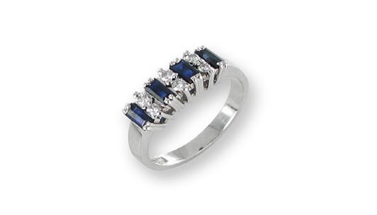 ANILLO PLATINO, 2 BRILLANTES DE 8 PTS. Y 4 BRILLANTES DE 1 PTO | Combinación de diamantes grandes y pequeños